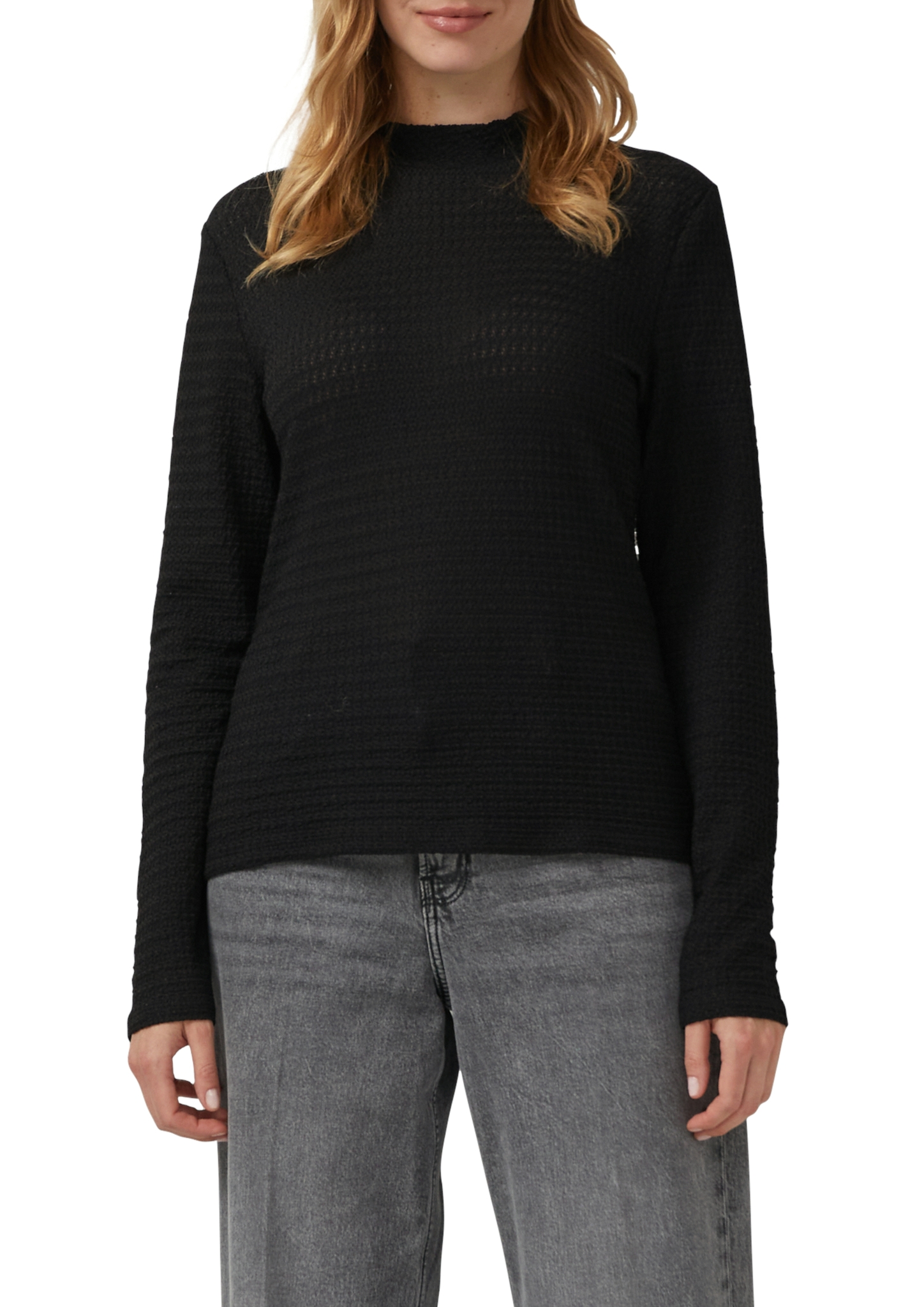 Materialzusammensetzung "s.Oliver Halbdurchsichtiger Longsleeve mit Stehkragen"