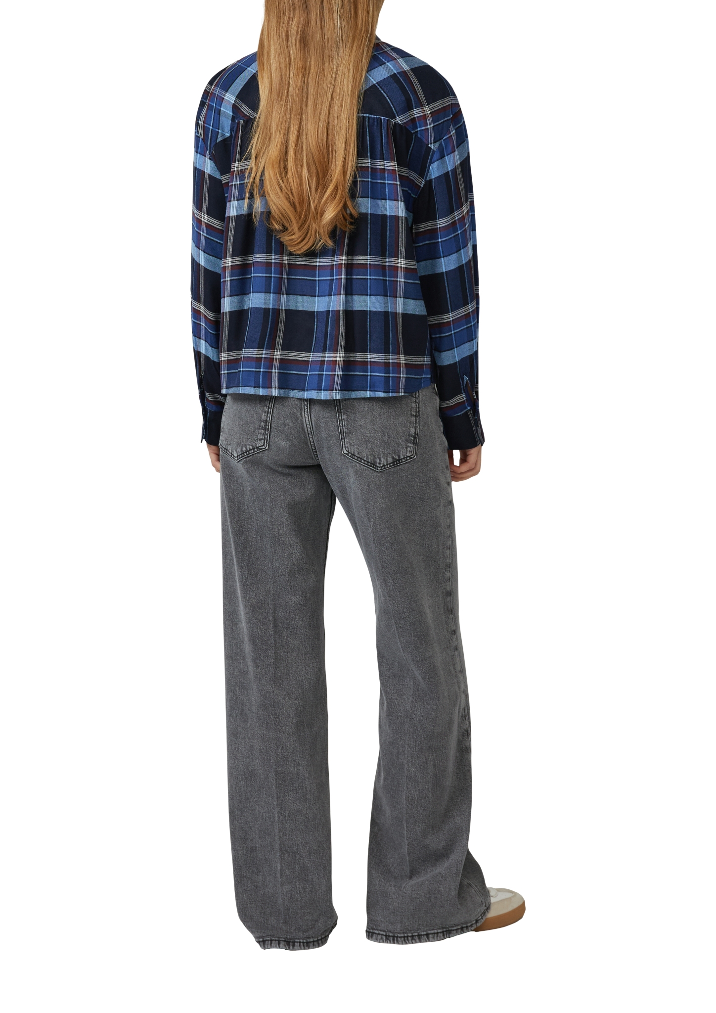 Karierte Hemdbluse mit Raffung am Rücken – dein lässiger Begleiter für entspannte Tage. Fließender Stoff und überschnittene Schultern sorgen für Komfort. Der feminine Touch verleiht dir einen stilvollen Look im Alltag.