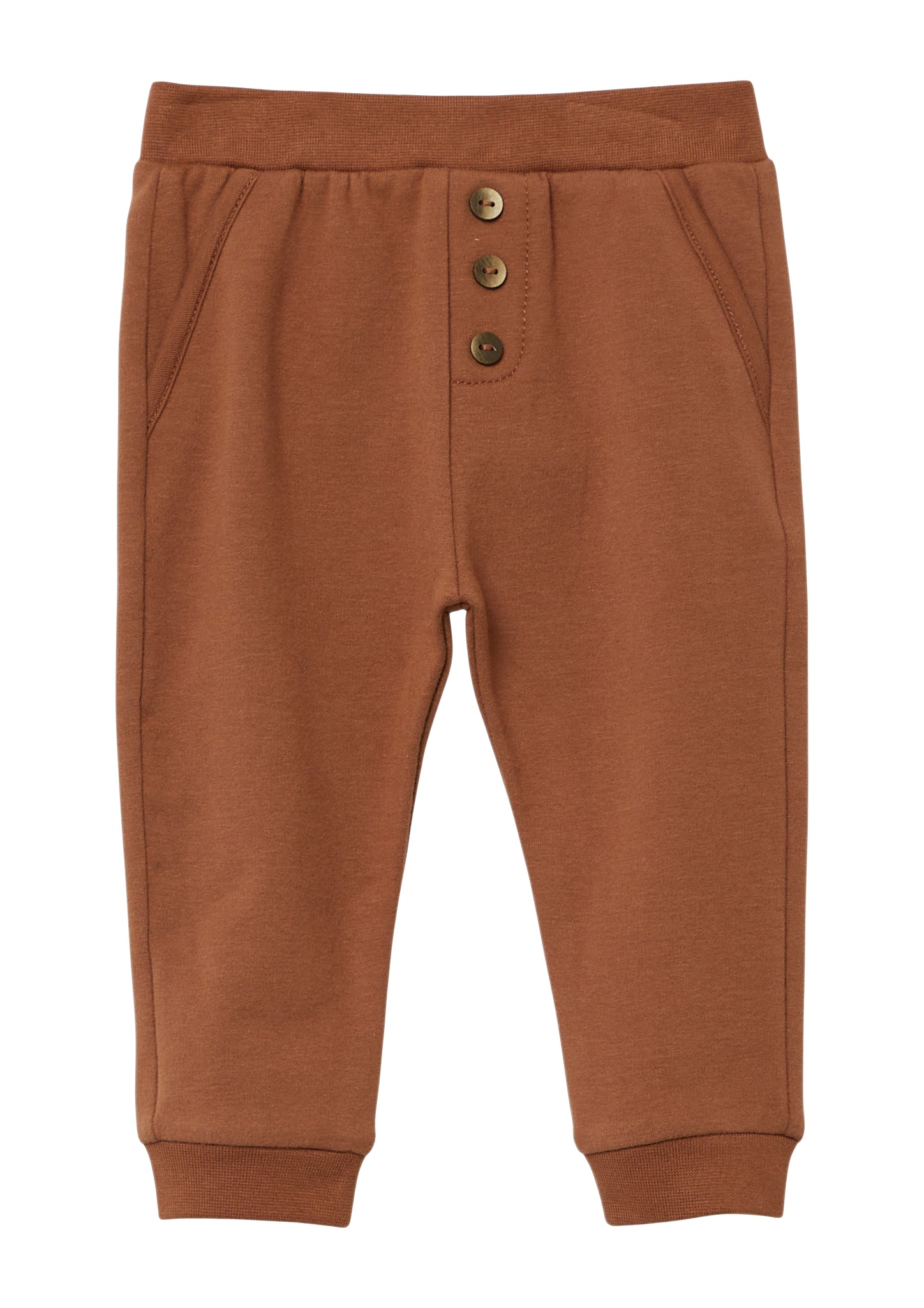 Bequeme Jogginghose mit elastischem Rippbund und praktischen Eingrifftaschen. Der Regular Fit und die Rippware bieten optimalen Komfort für aktive Kinder. Die Zierknopfleiste verleiht dem Alltagsbegleiter eine stylische Note.