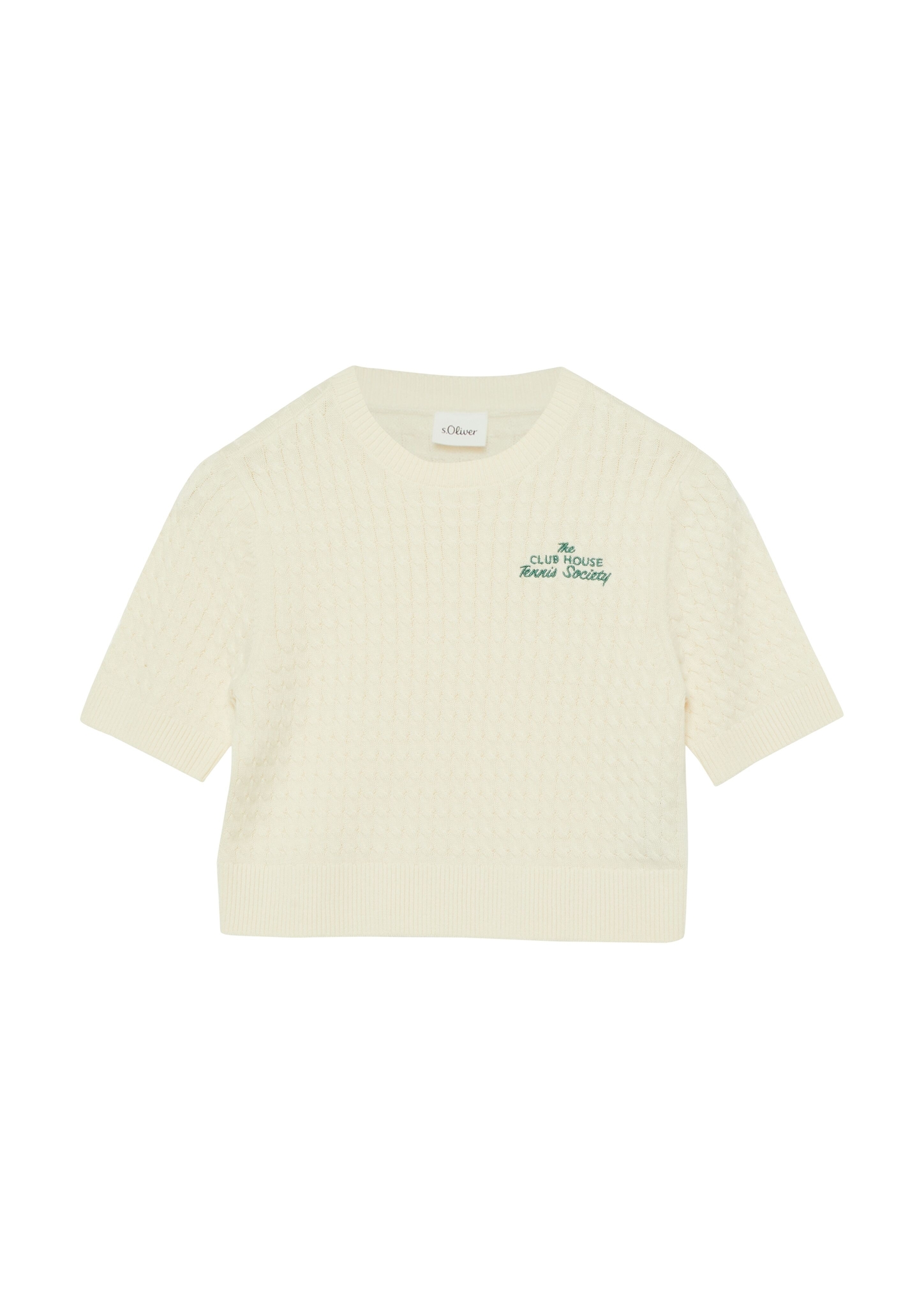 Eigenschaften "s.Oliver Kurzarmstrickpullover mit Zopfmuster und Stickerei "