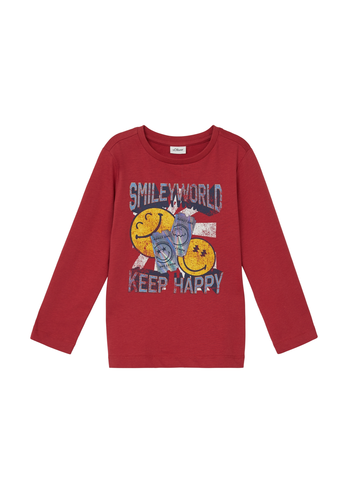Fröhliches Smiley-Longsleeve für dein Kind! Das kuschelige Jersey-Shirt aus Baumwolle sorgt mit seinem Regular Fit für Bewegungsfreiheit beim Spielen. Der Rundhalsausschnitt mit Rippblende macht das An- und Ausziehen einfach. Der lustige Frontprint bringt garantiert gute Laune in den Alltag deines Kleinen.