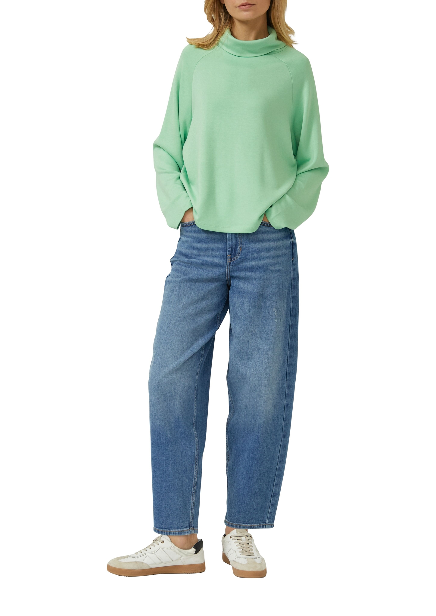 Dieses entspannte Sweatshirt aus weichem Viskosemix wird dank Schalkragen zum echten Wohlfühl-Favoriten. Die Raglanärmel und der lässige Relaxed Fit machen es zum perfekten Begleiter für gemütliche Tage zuhause oder entspannte Treffen mit Freunden. Einfach überstreifen – und du fühlst dich rundum gut!