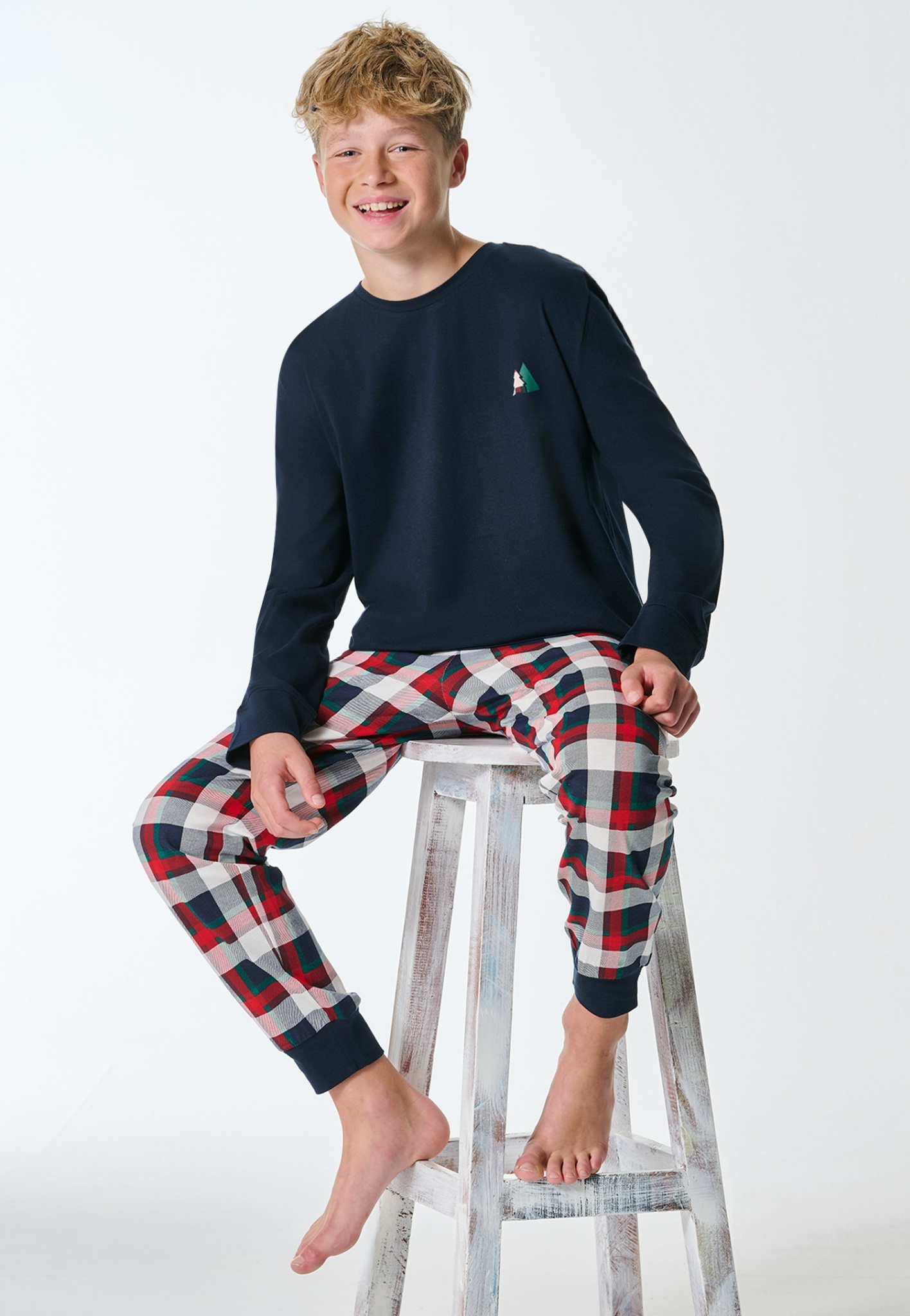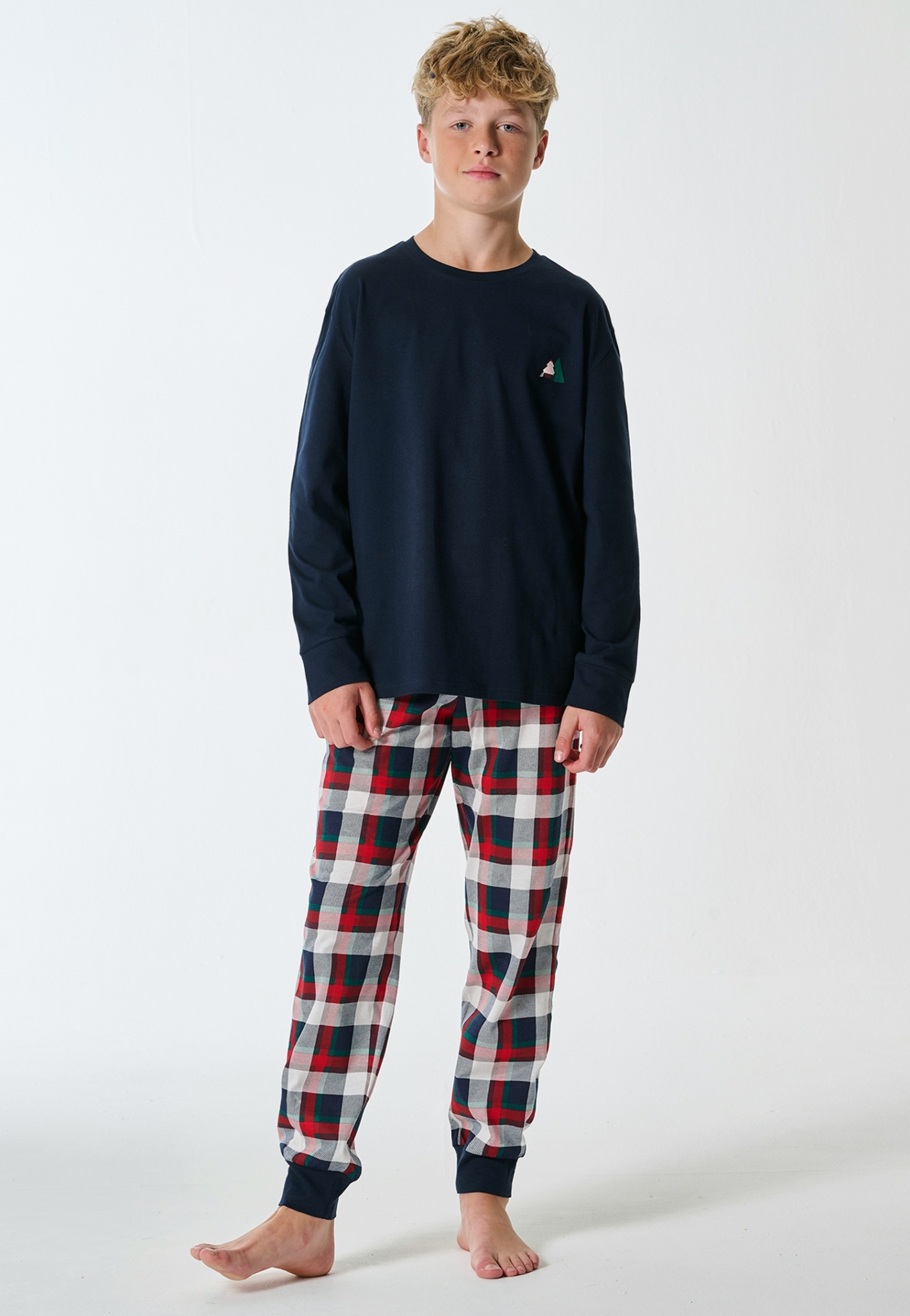 - Oberteil in Nachtblau mit kleinem Tannenmotiv auf der Brust