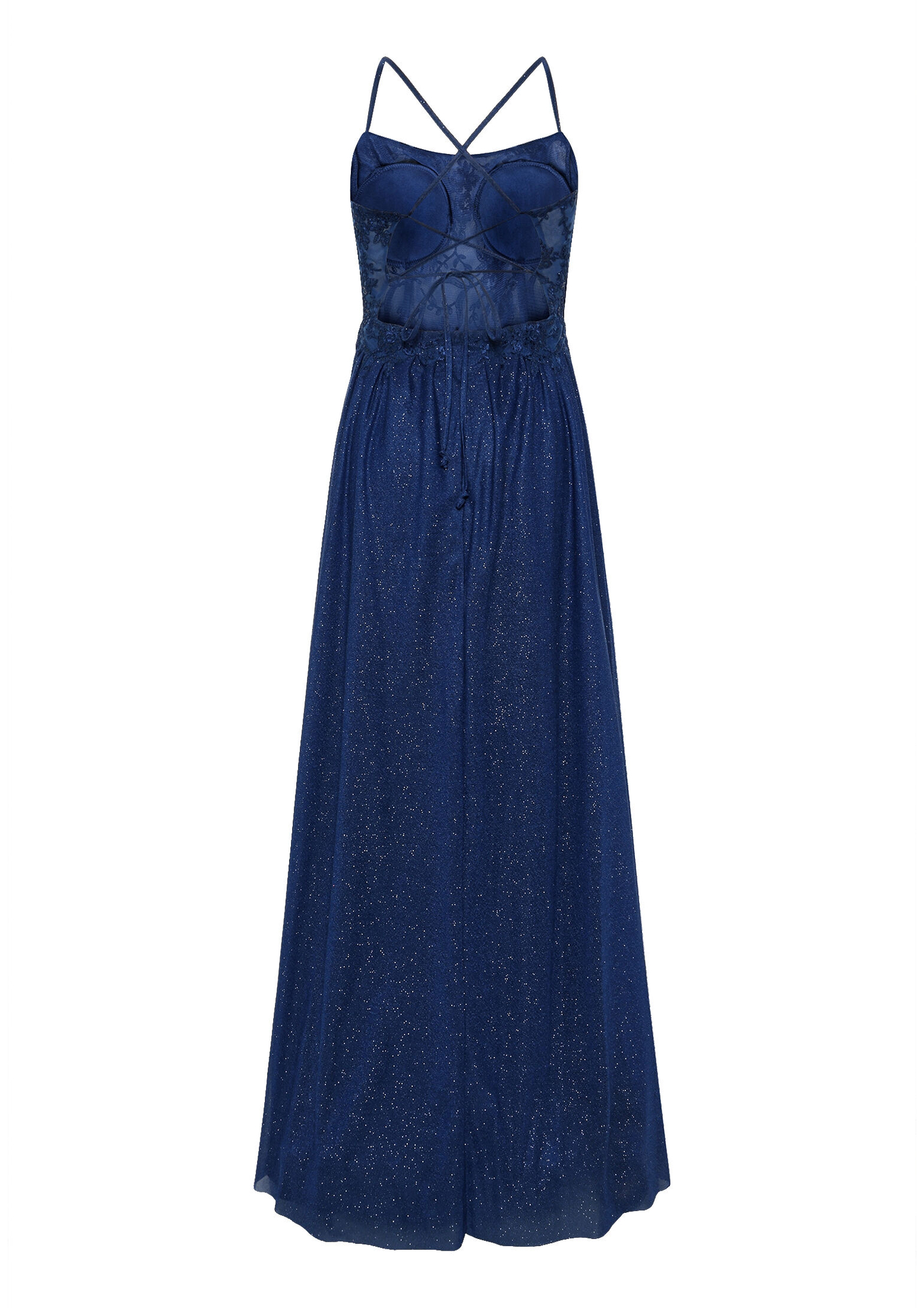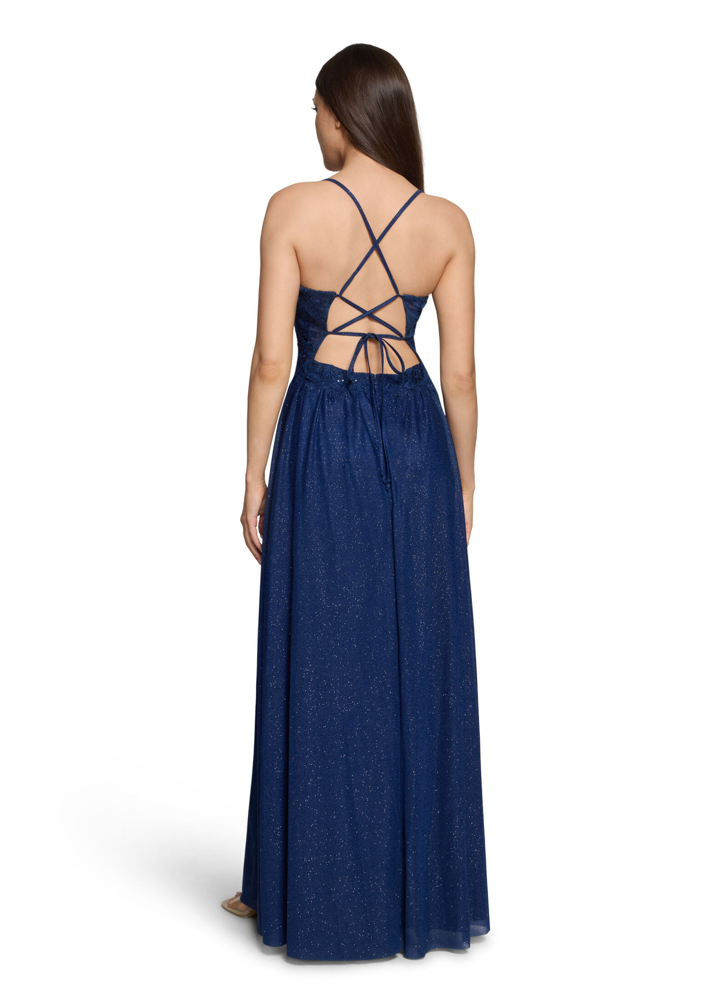 * Passform: Ausgestellt * Gesamtlänge: 157 cm * Länge ab Taille: 115 cm * Ärmellänge: Ohne Arm * Ausschnittform: Rundhals-Ausschnitt * Längeninfo: Maxi * Materialart: Polyester * Trägerart: Spaghettiträger * Verschluss: Schnürung * Muster: Uni * Futter: 100% Polyester