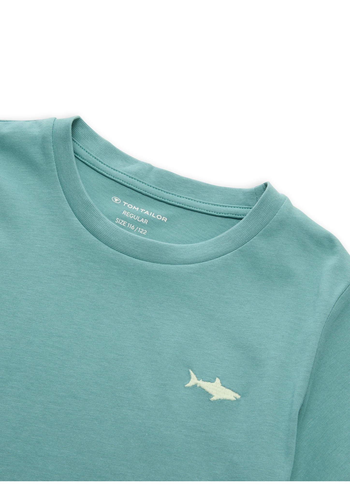 Basic T-Shirt mit kleiner Hai-Stickerei auf der Brust. Aus einem Single-Jersey-Stoff aus Baumwolle.