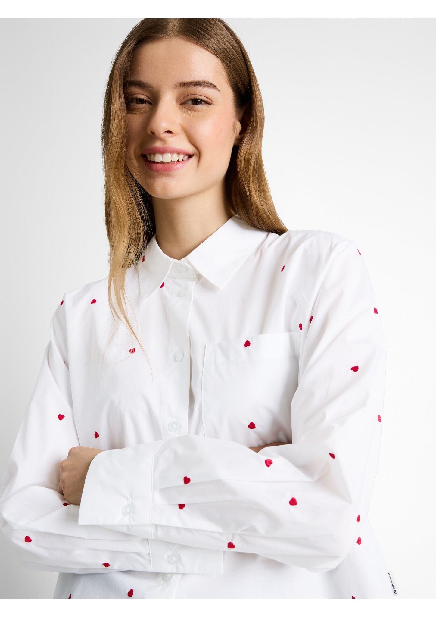 Pflegehinweise "Tom Tailor Denim Boxy Fit Hemdbluse mit Herz-Stickerei"