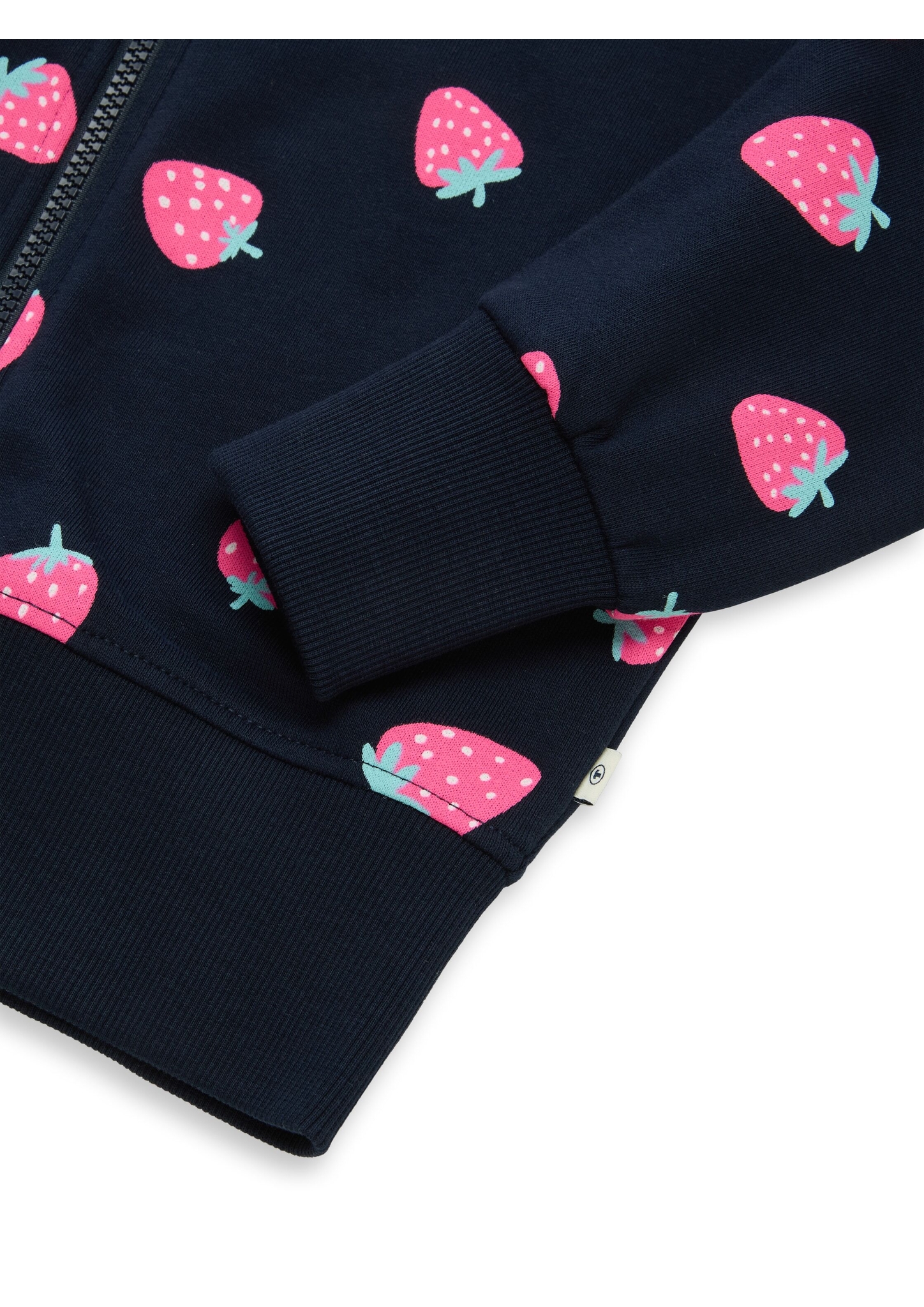 Pflegehinweise "Tom Tailor Denim Cropped Hoodie Sweatjacke mit Erdbeer-Print"