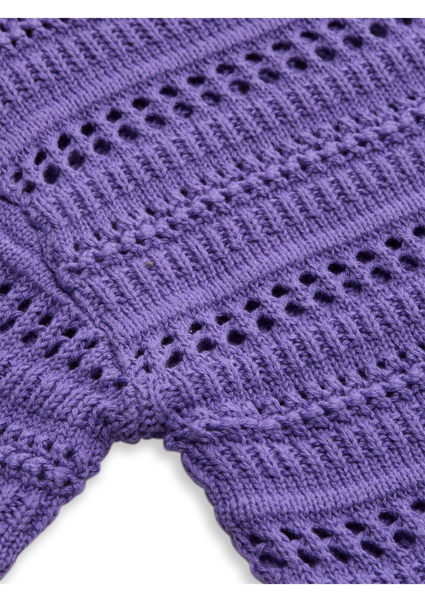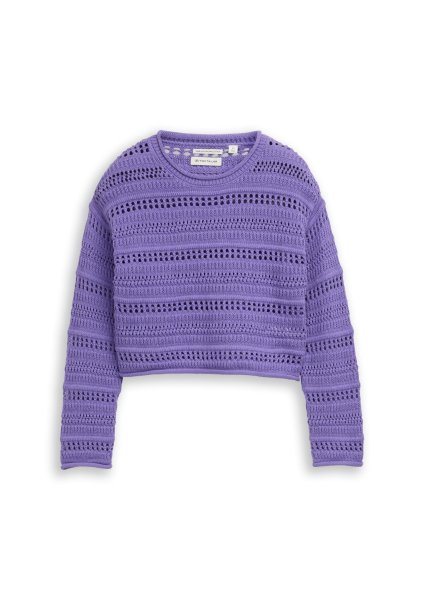 Kurz geschnittener Strickpullover mit Lochstrickmuster. Mit gerollten Saumkanten.