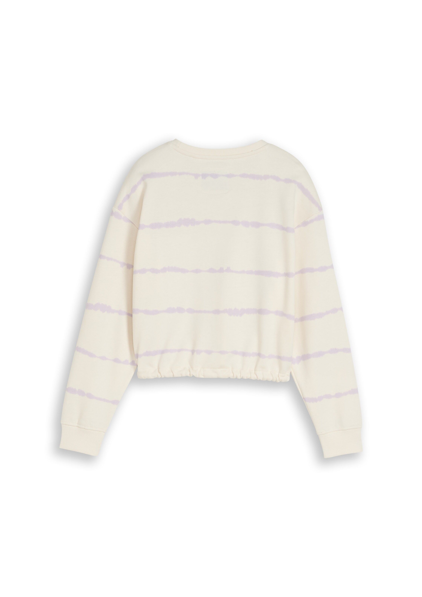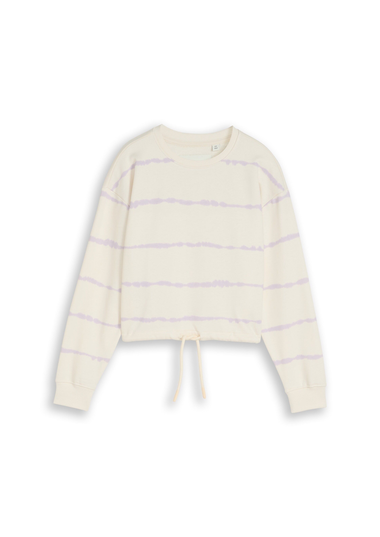 Kurzes Sweatshirt mit Kordelzug im Batik-Look. Mit überschnittener Schulternaht für eine lockere Passform und elastischem Gummibund am Ärmelsaum. Aus einem weichen Baumwollstoff. Leicht aufgerautes Innenfutter sorgt für ein warmes und weiches Tragegefühl.