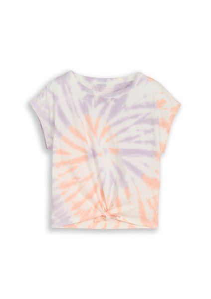 Cropped T-Shirt in Batik-Optik mit leicht überschnittenen Schultern. Aus einem weichen Single-Jersey-Baumwollstoff.