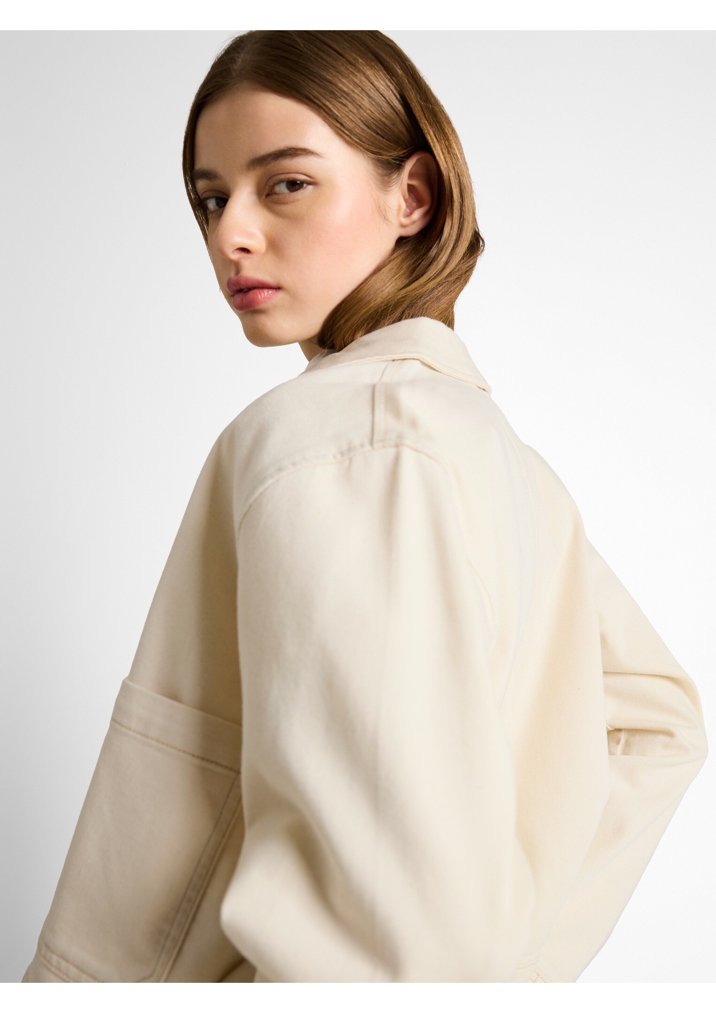 Jeansjacke mit aufgesetzten Taschen und überschnittener Schulternaht