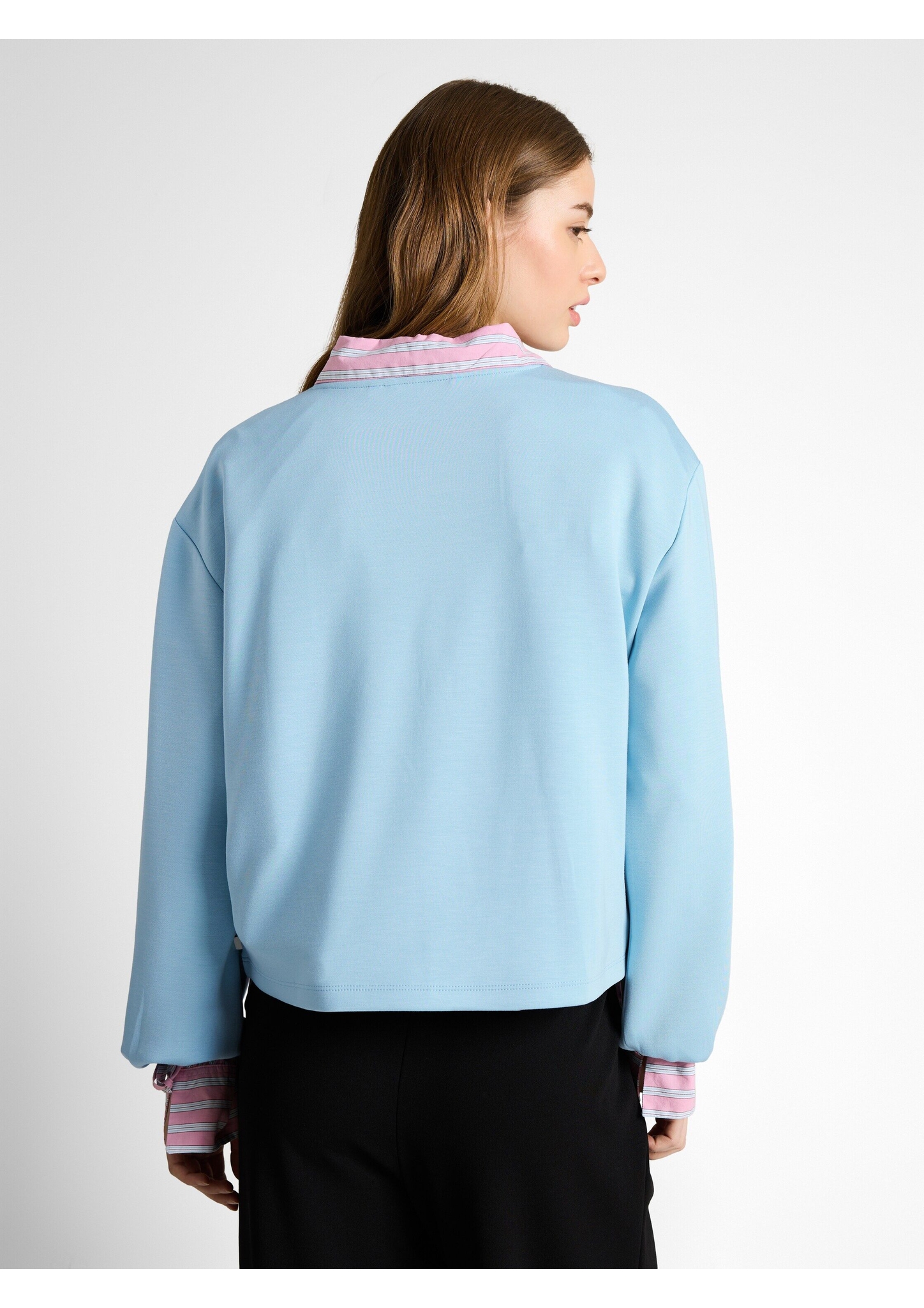 Longsleeve mit elastischem Gummibund am Ärmelsaum und überschnittener Schulternaht für eine lockere Passform. Aus einem weichen, knitterarmen und elastischen Scuba-Stoff.