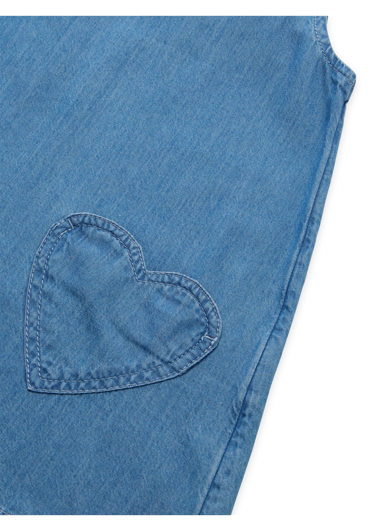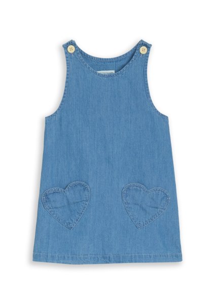 Jeanskleid mit Trägern und aufgesetzten Herz-Taschen vorne. Aus einem gewebten Twill-Baumwollstoff.