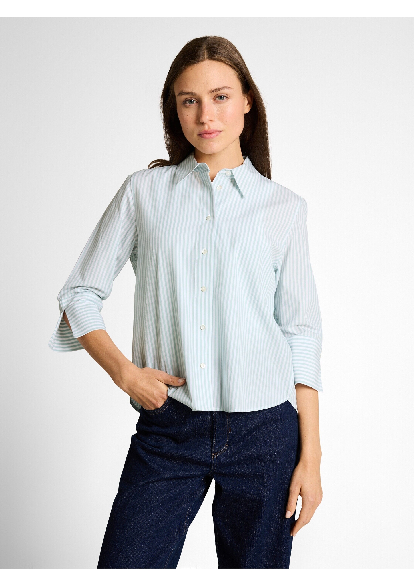 Bluse mit 3/4-Arm, Kragen und Knopfleiste. Aus einem gewebten Popeline-Stoff. mehr