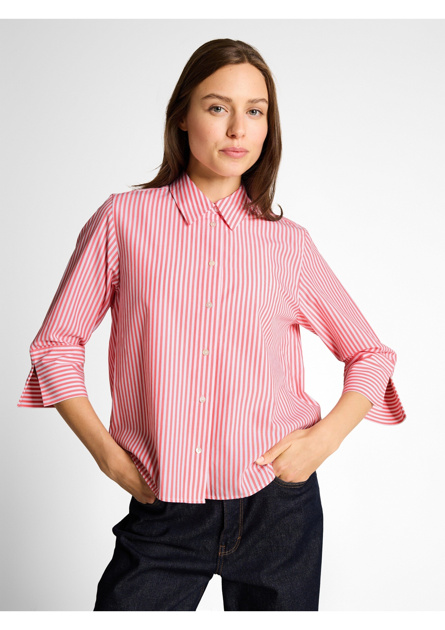 Bluse mit 3/4-Arm, Kragen und Knopfleiste. Aus einem gewebten Popeline-Stoff. mehr