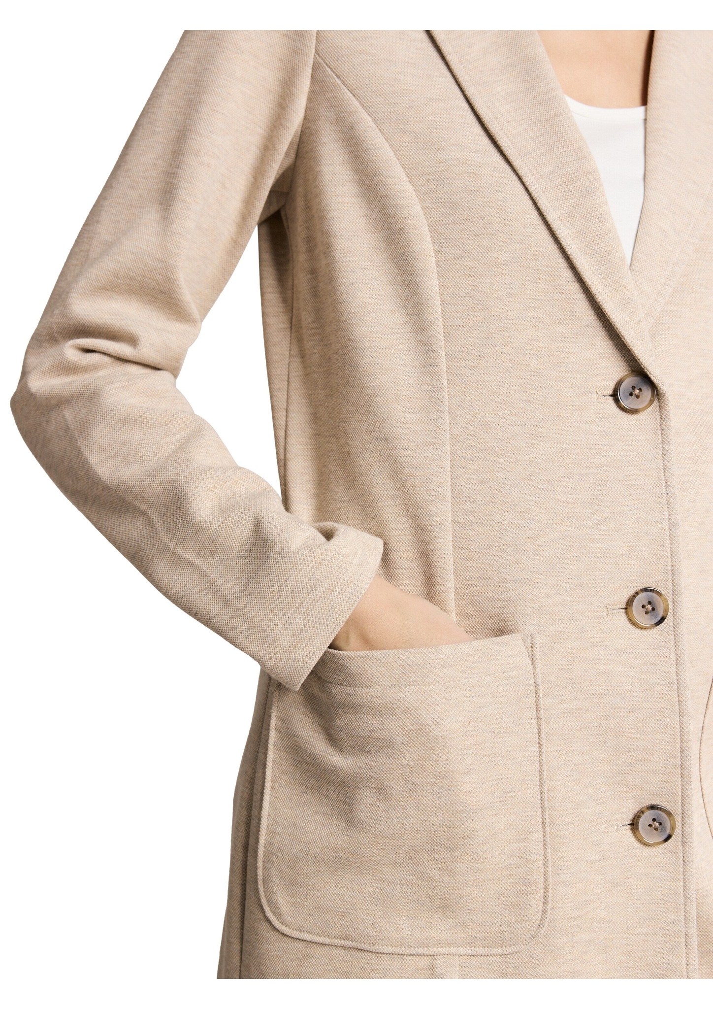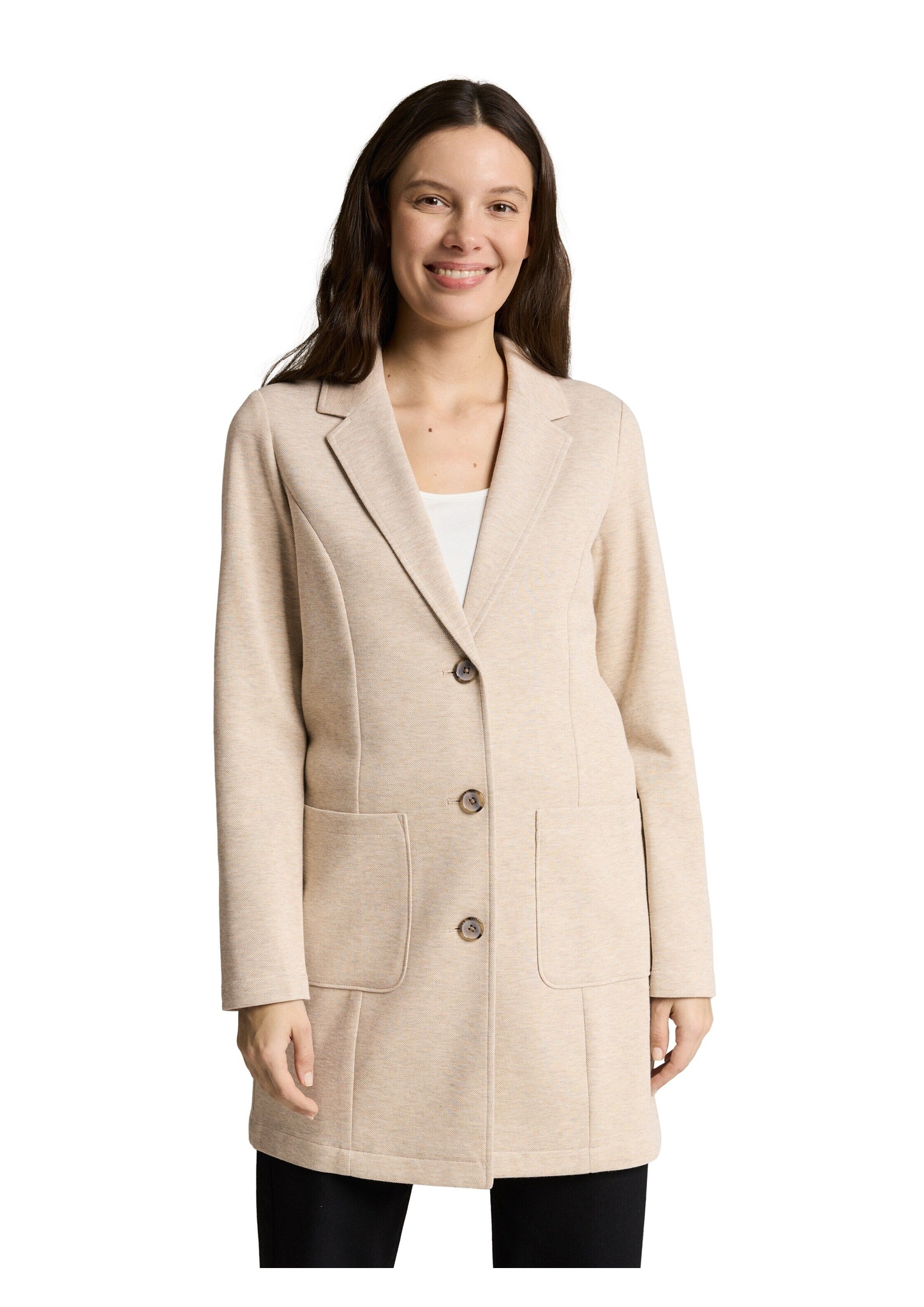 Dünner, taillierter Mantel im Blazer-Look mit Reverskragen und aufgesetzten Taschen auf der Vorderseite. Stretch-Anteil sorgt für einen angenehmen Tragekomfort.