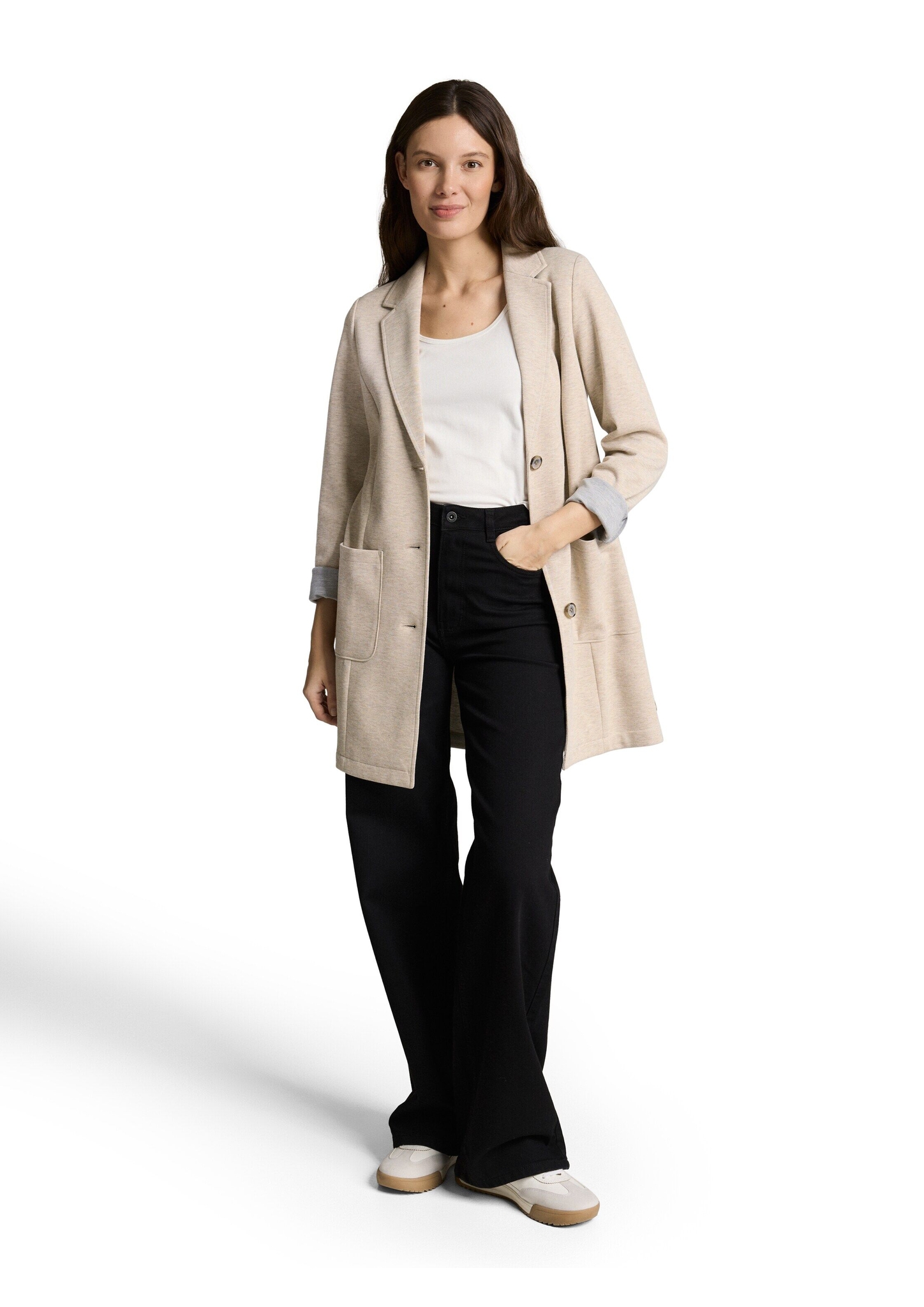 Dünner, taillierter Mantel im Blazer-Look mit Reverskragen und aufgesetzten Taschen auf der... mehr