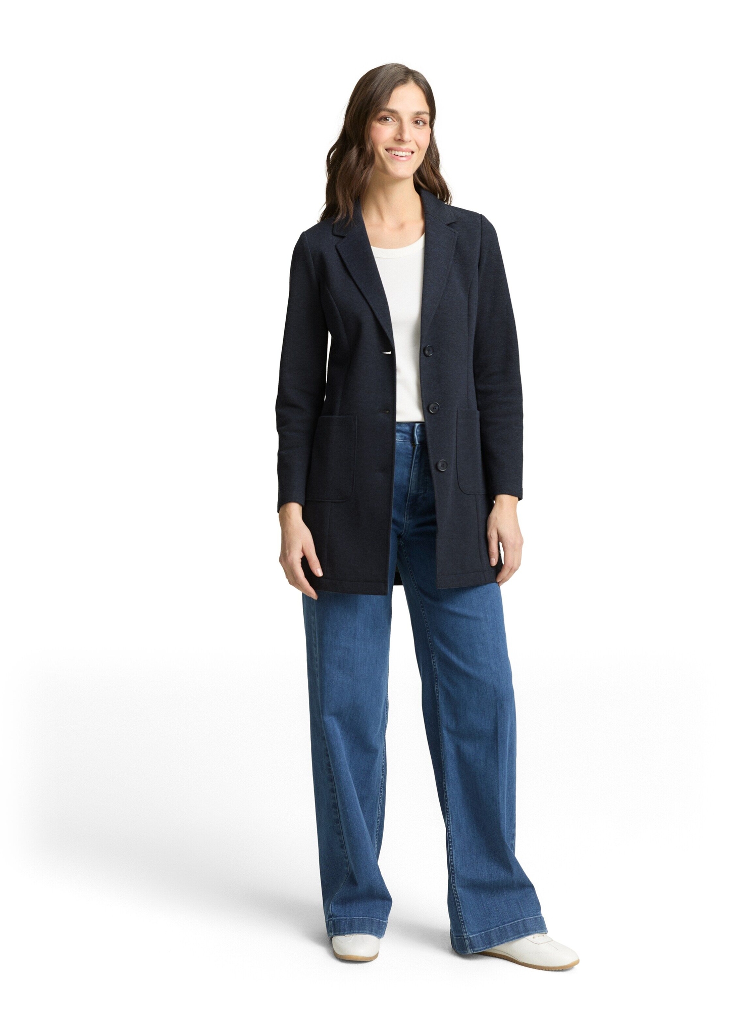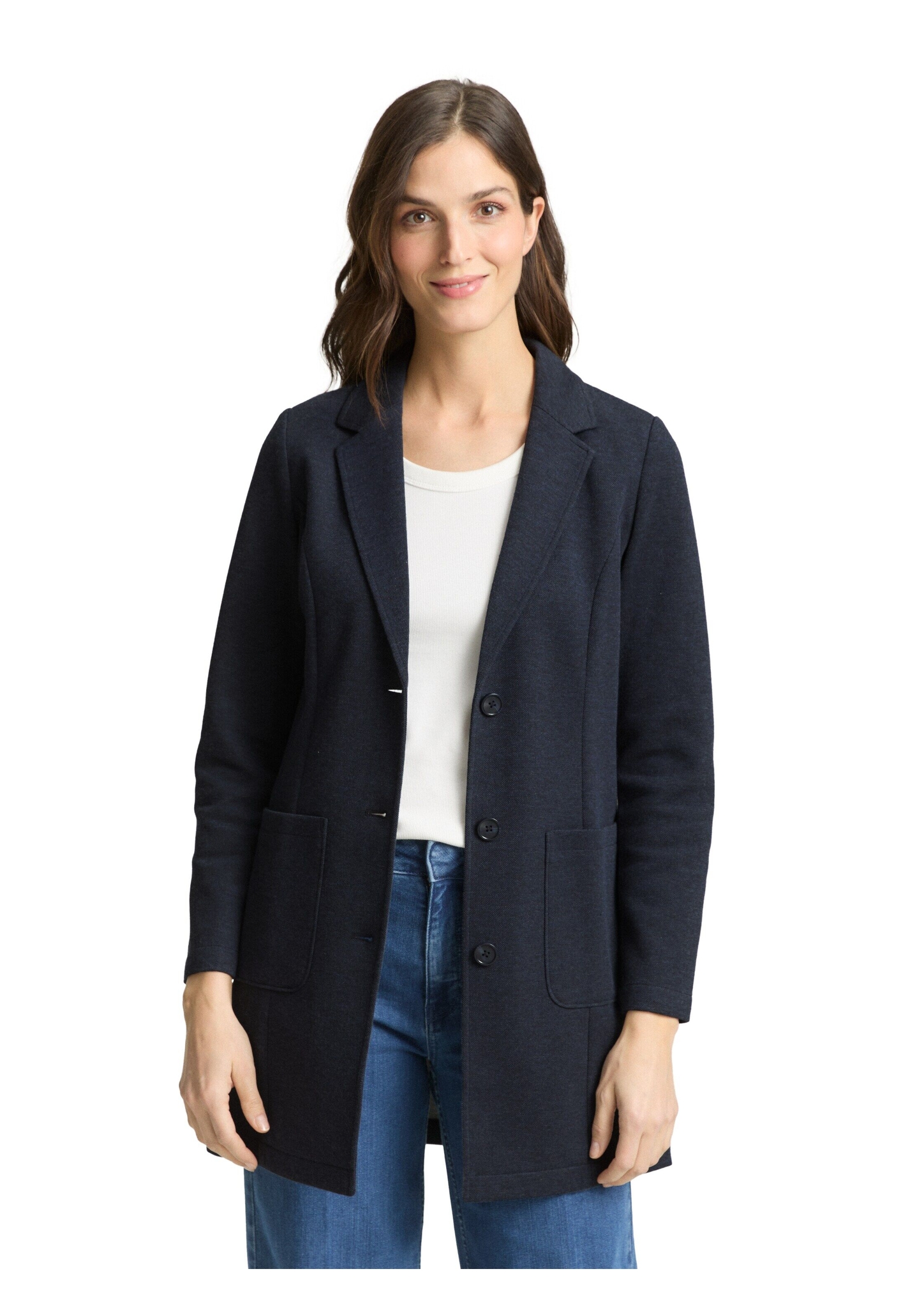Dünner, taillierter Mantel im Blazer-Look mit Reverskragen und aufgesetzten Taschen auf der Vorderseite. Stretch-Anteil sorgt für einen angenehmen Tragekomfort.