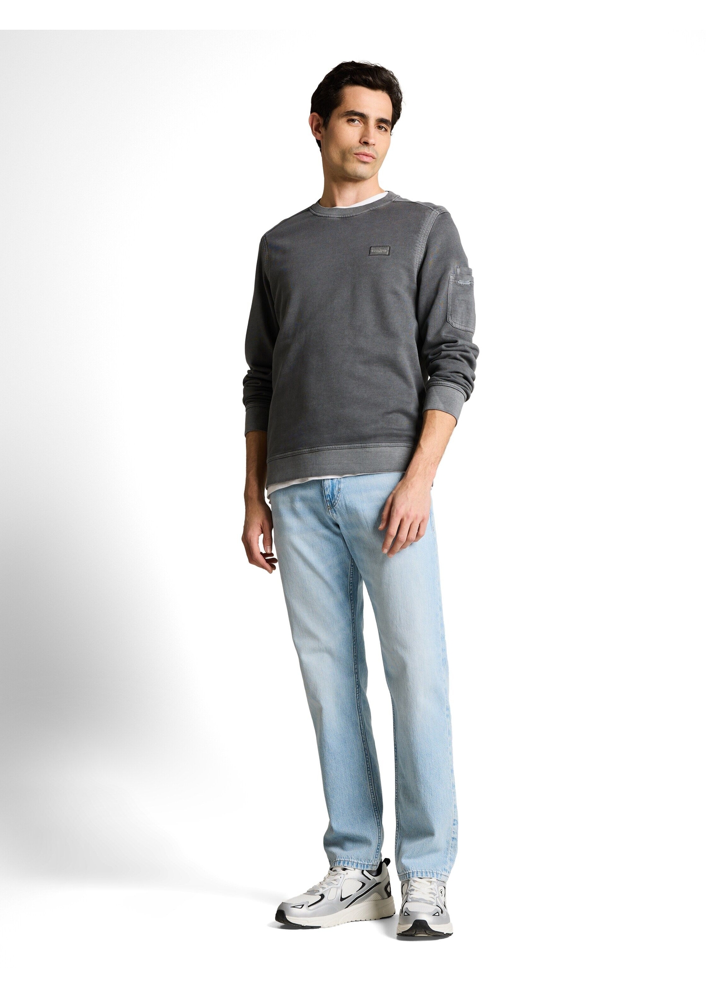 Crewneck Sweatshirt aus Baumwolle mit Garment-Dye-Effekt für einen Used-Look. Mit Logo-Badge auf der Brust und aufgesetzter Tasche am oberen Ärmel.