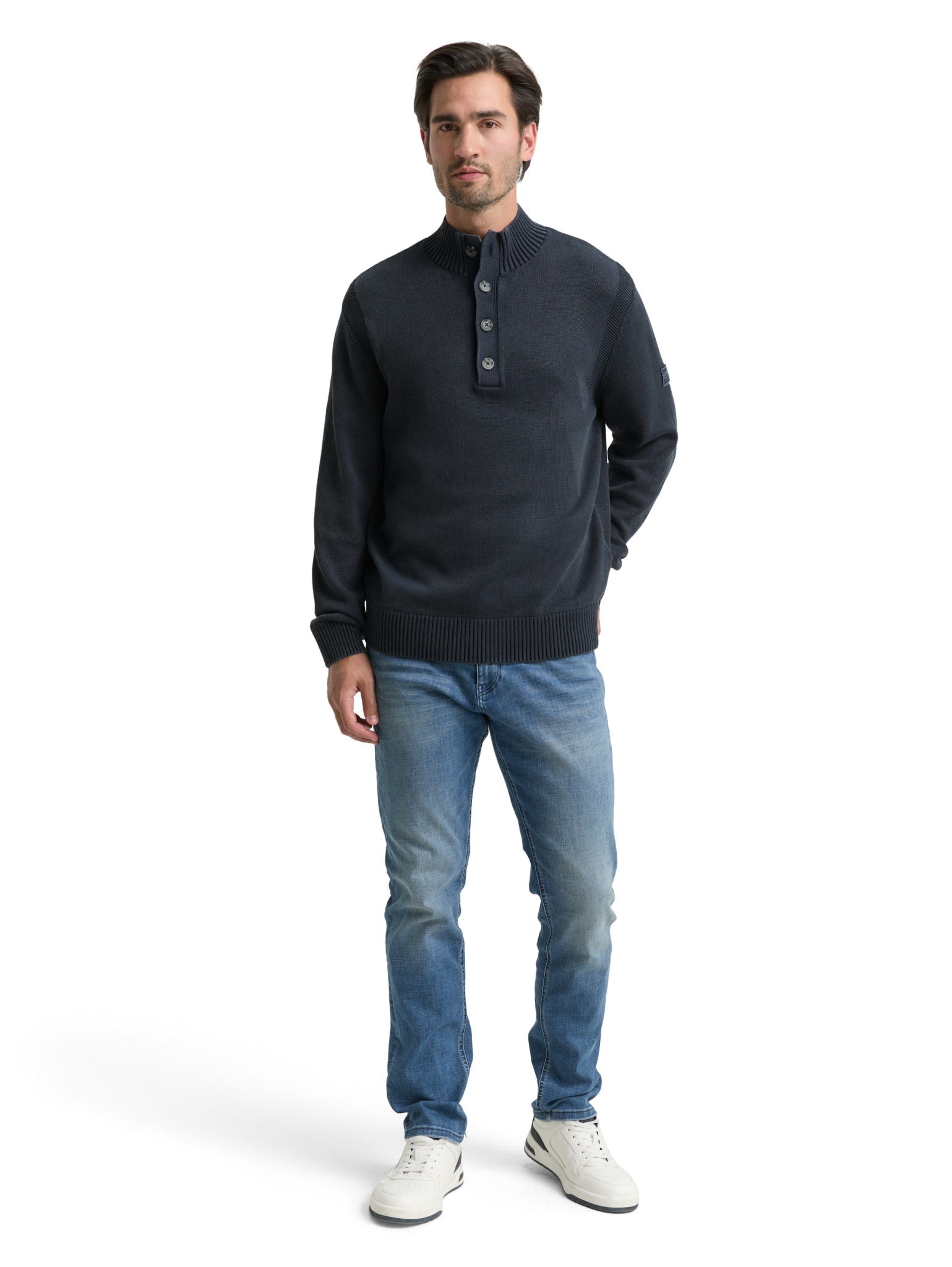 Eigenschaften "Tom Tailor Troyer Strickpullover im Washed-Look aus Baumwolle"