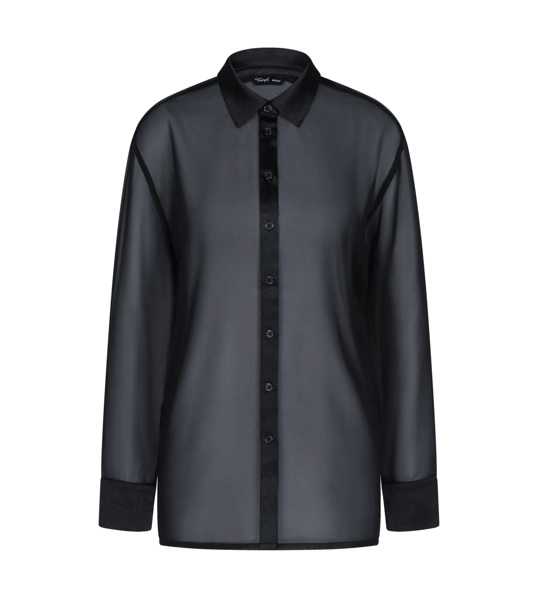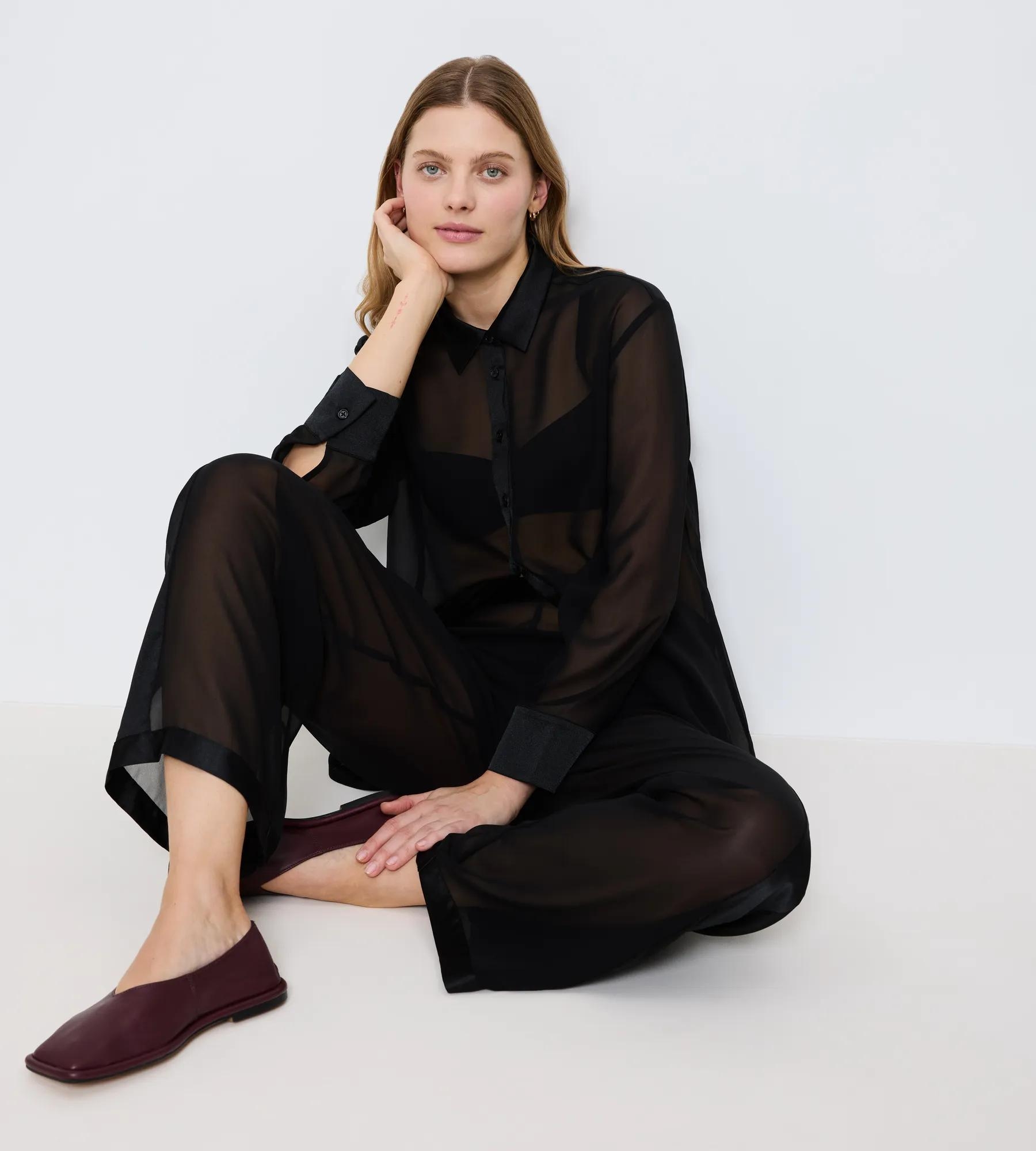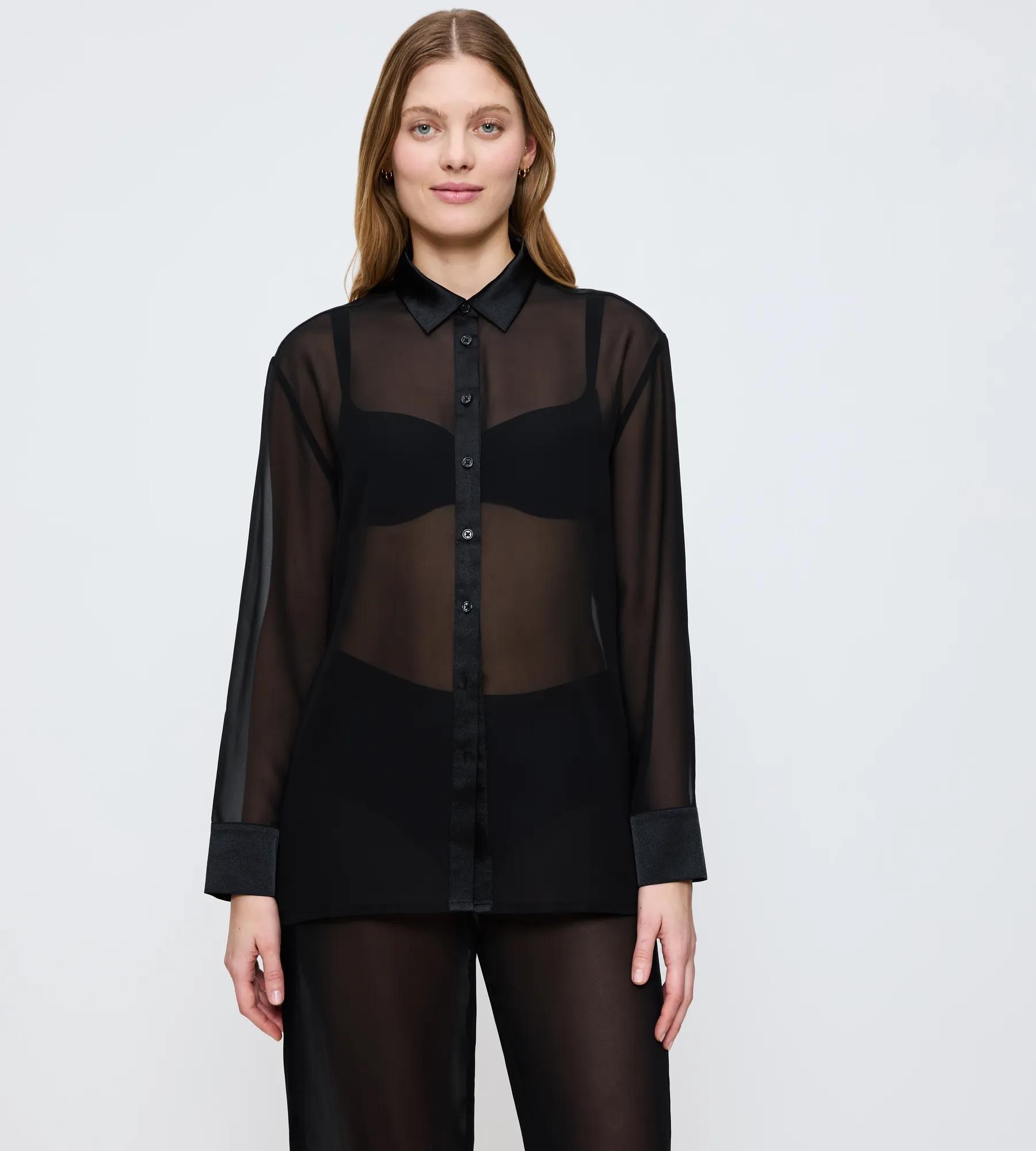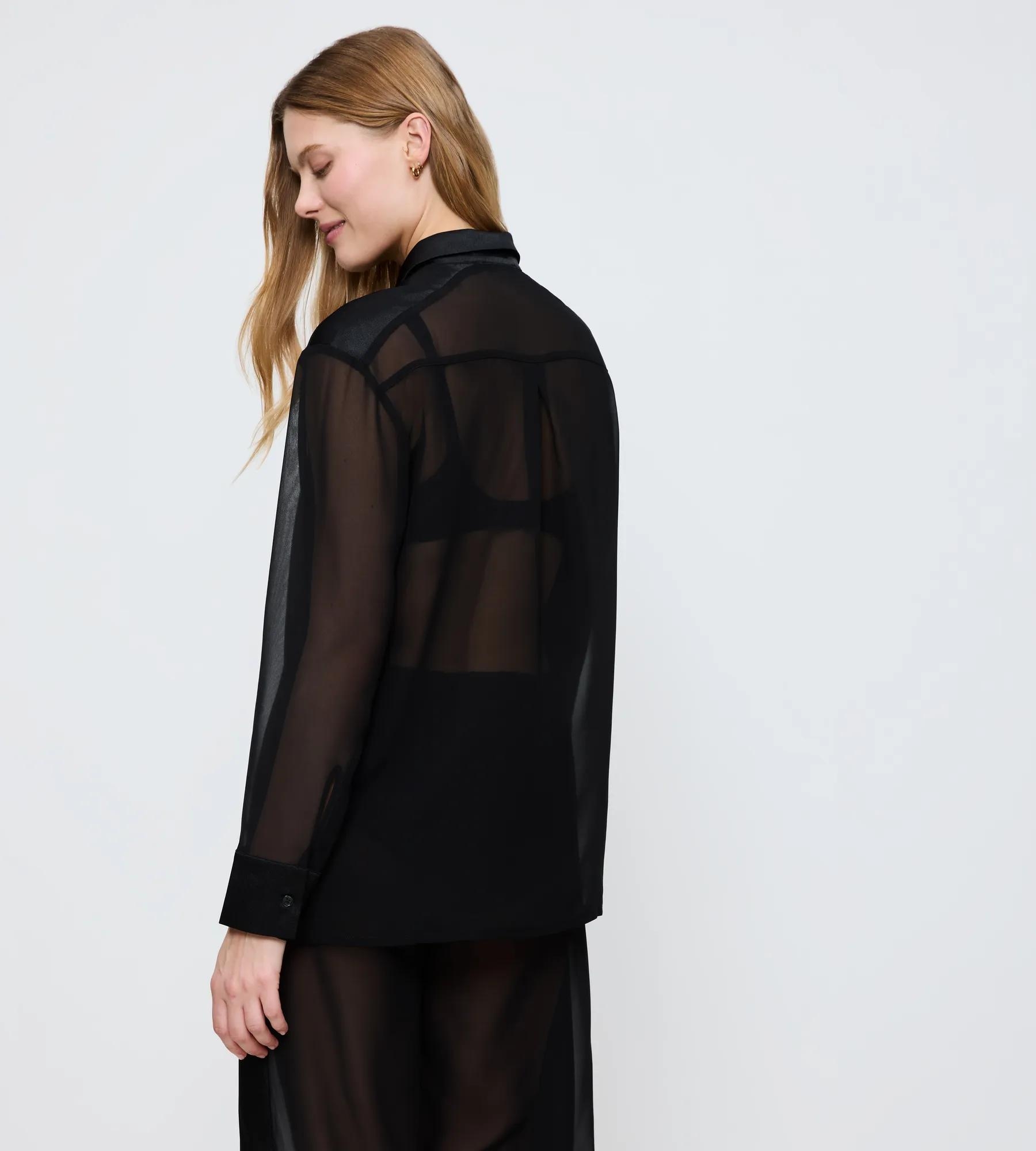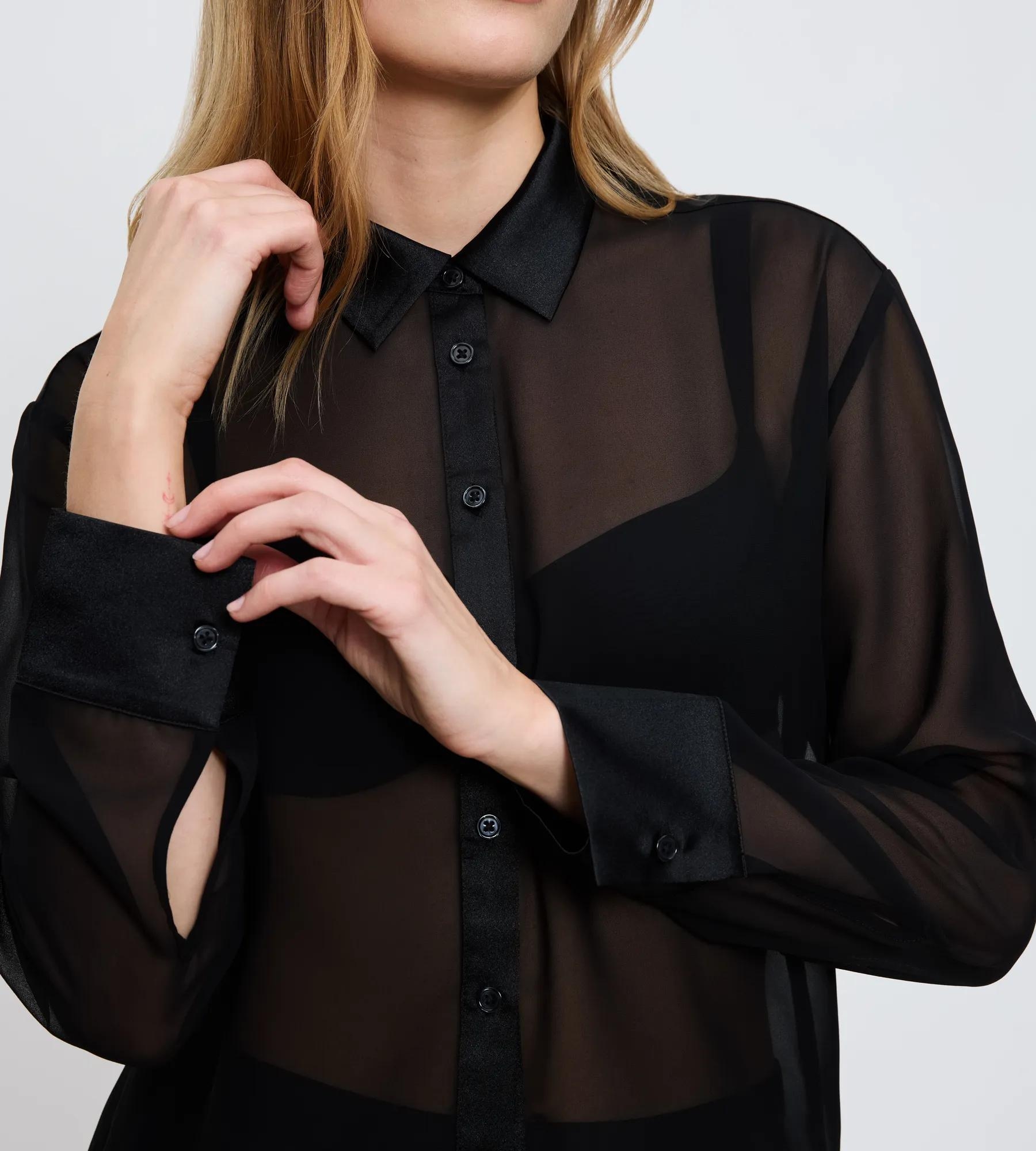 - Transparenter, leichter Chiffon und schimmernde Satineinsätze an Kragen und Manschetten