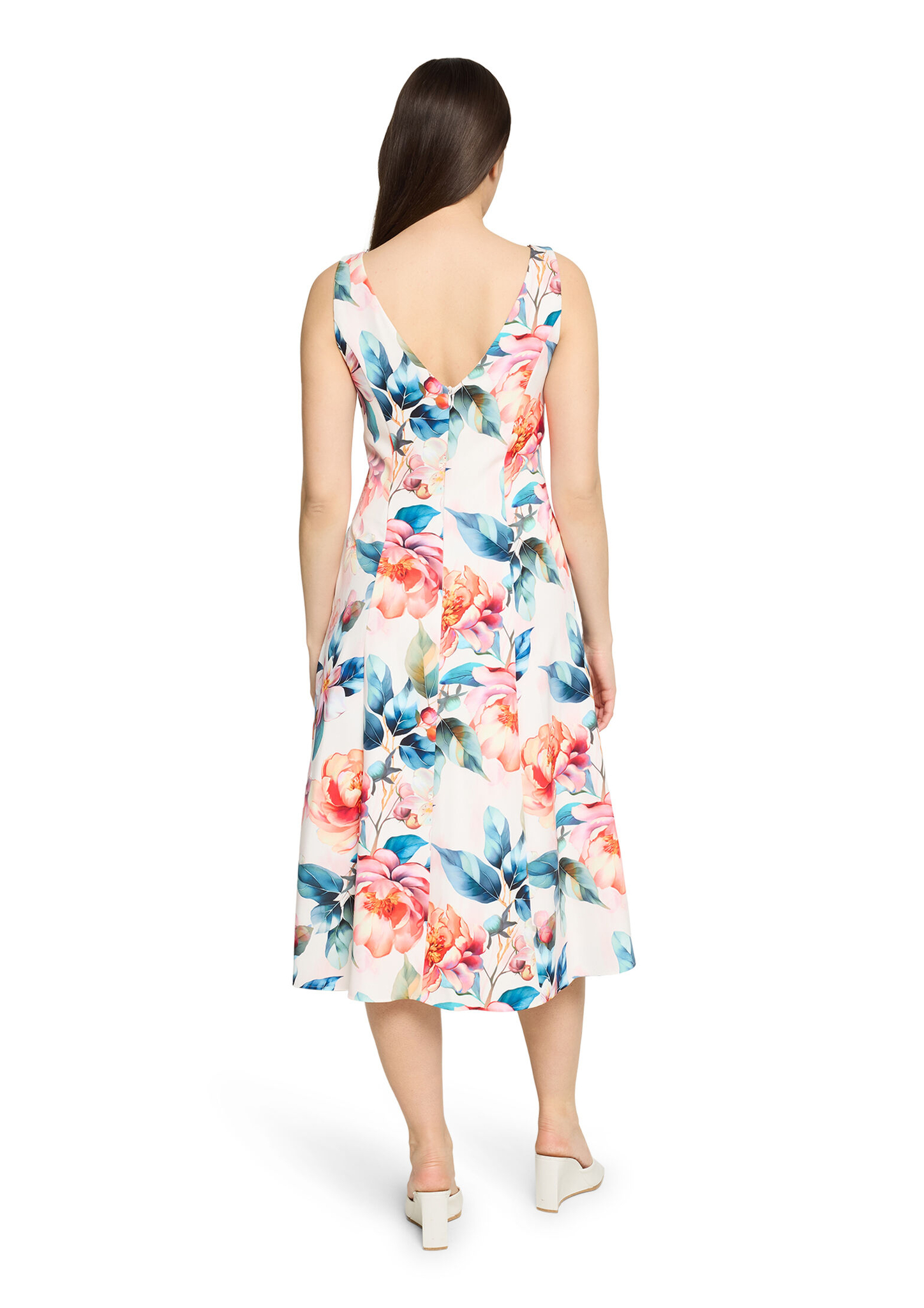 * Passform: Ausgestellt * Gesamtlänge: 117 cm * Länge ab Taille: 75 cm * Ärmel: Ärmellos * Ausschnittform: U-Boot-Ausschnitt * Längeninfo: Midi * Tasche: Nahttaschen * Verschluss: Reißverschluss * Muster: Floral / Blumen