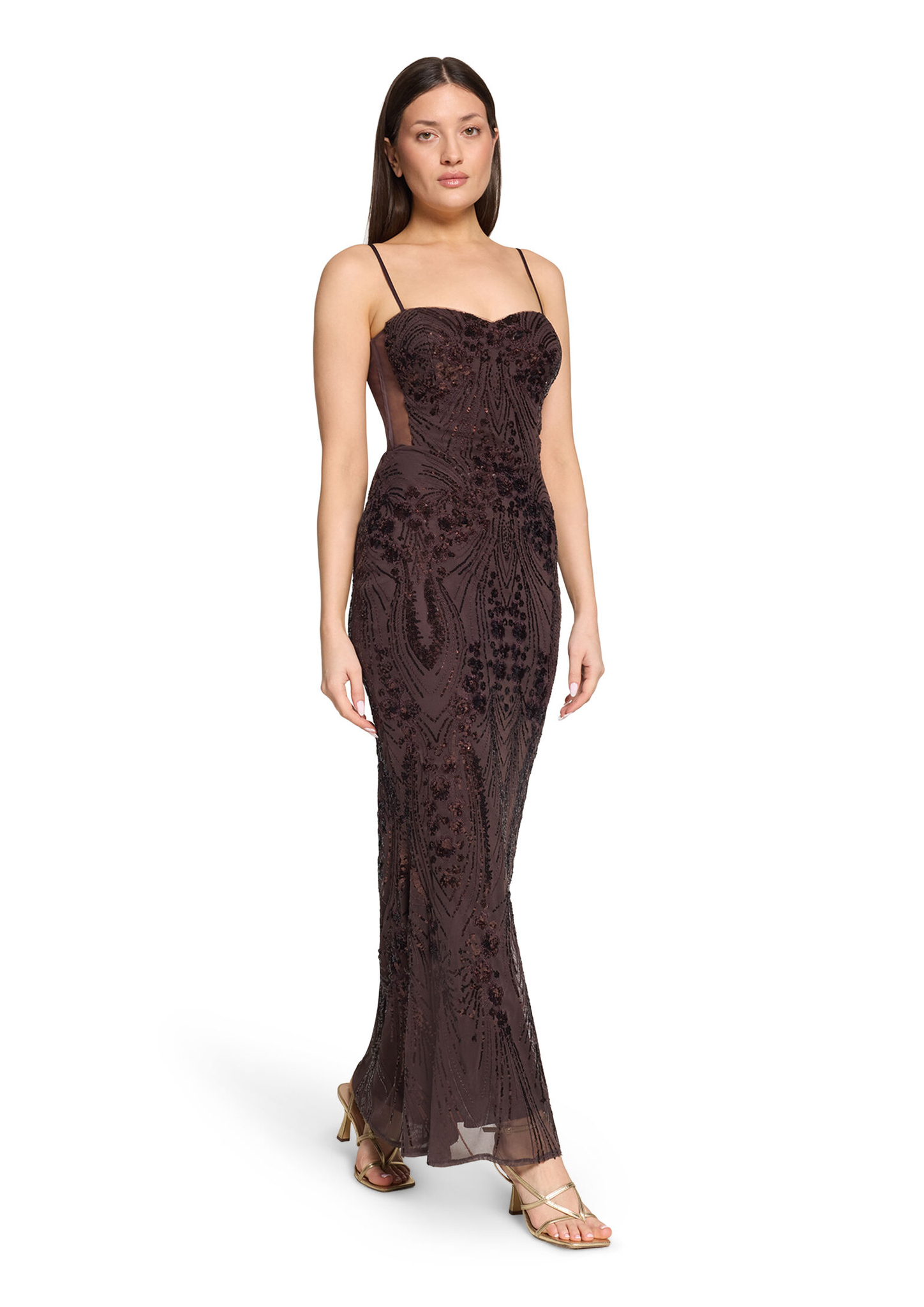 * Passform: Figurbetont * Gesamtlänge: 154 cm * Länge ab Taille: 112 cm * Ärmellänge: Ohne Arm * Längeninfo: Maxi * Materialart: Mesh * Trägerart: Verstellbare Träger * Verschluss: Reißverschluss * Muster: Uni * Futter: 100% Polyester * Besatz: 100% Polyamid