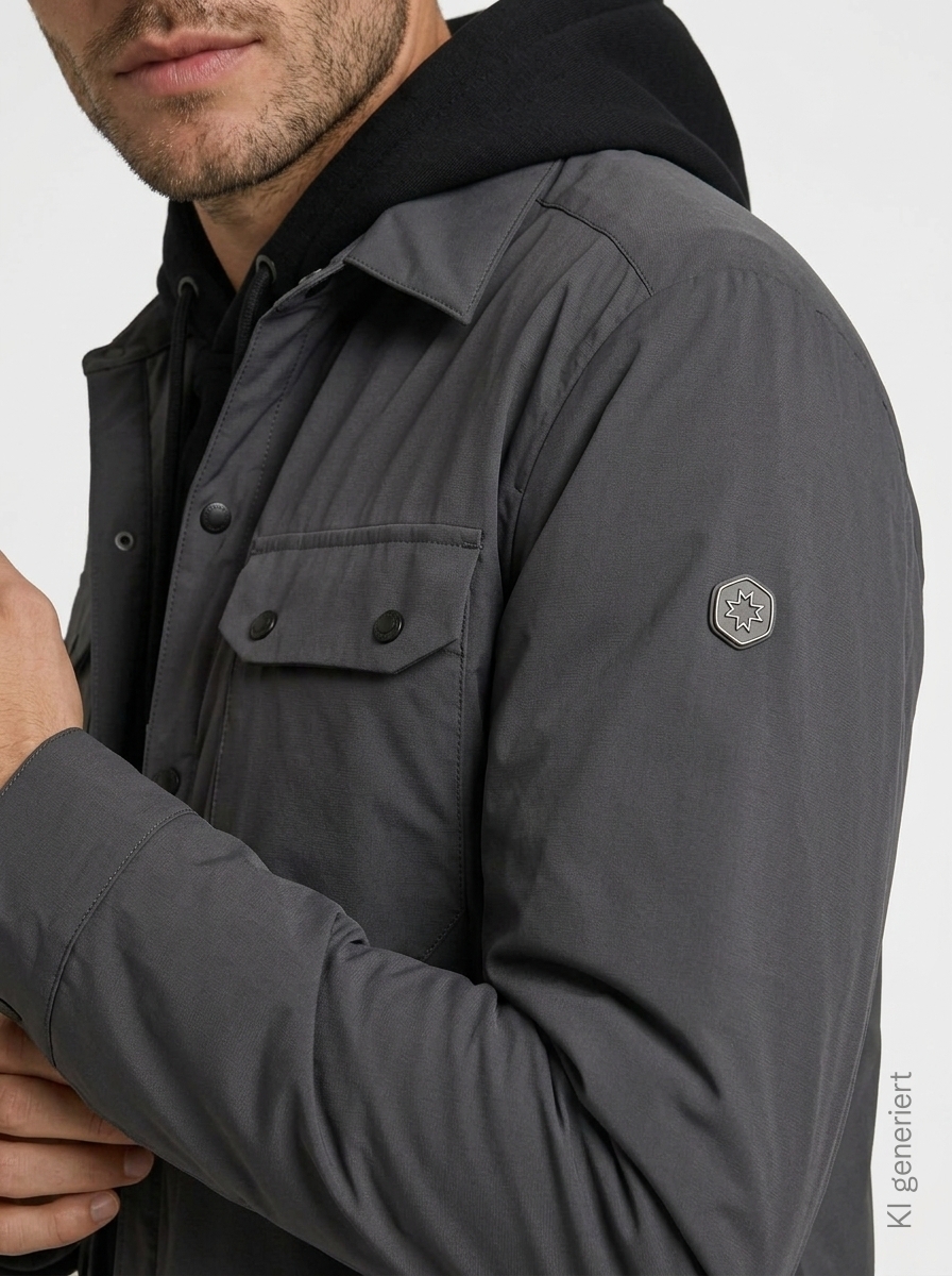 - Mit aufgesetzten Taschen und einer Innentasche