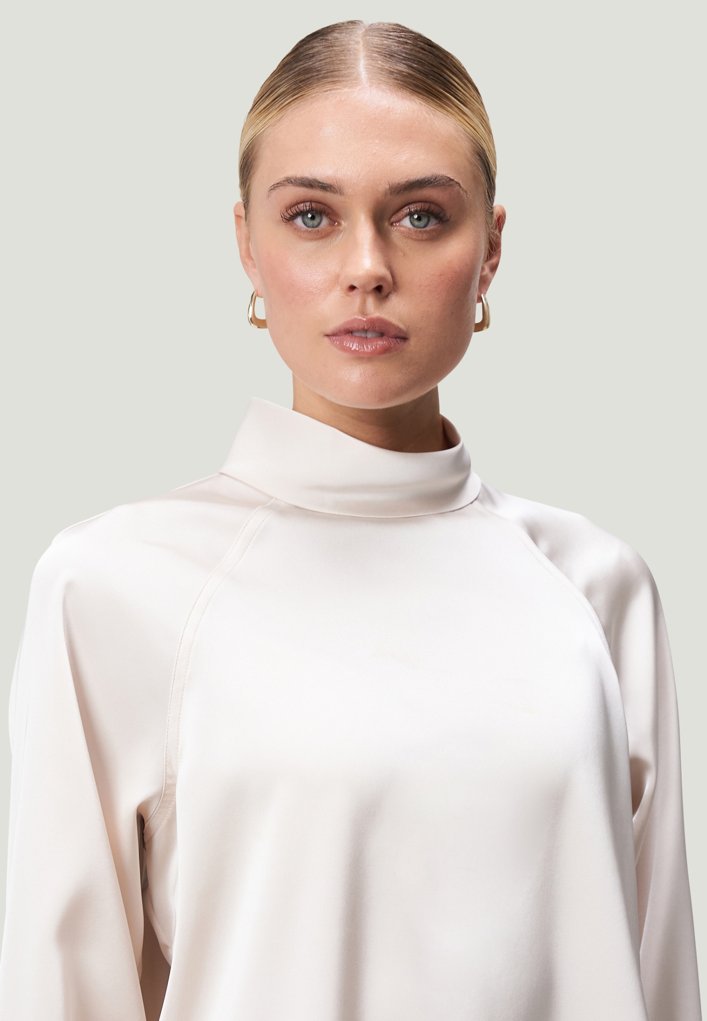 Materialzusammensetzung "ZERO Satinbluse mit Stehkragen"